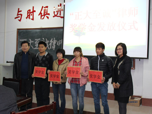 会议伊始,王仲孝向与会的成员介绍了“正大至诚”律师奖学金及其评选标准和流程,同时对奖学金奖项设置进行了说明,并公布了今年获得奖学金的学生名单。随后,正大至诚律师事务所的相关领导向受资助的8名同学发放奖学金,并由获奖学生代表衣彩青发言。首先她向正大至诚律师事务所表达了感谢,她说,这份荣誉能够激励同学们更好地投入到学习中去。并表示以后会肩负起反哺社会的责任,做一名服务社会、回报社会的有志青年。
