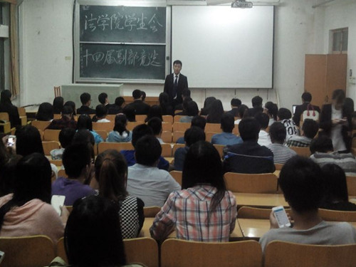 为加强院学生会建设,更好的为同学们服务,9月15日晚,我院学生会于一号教学楼102室举行第十四届学生会副部竞选。我院学生会主席王海林、副主席张晶等及各部部长参加。此次竞选活动由王海林主持。