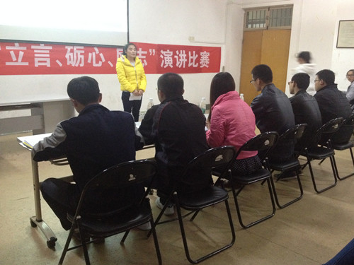 为普及心理知识,促进大学生人格的健康发展,我院心理健康月主题活动——“立言、砺心、励志”演讲比赛决赛,于11月5日晚,在一号教学楼412室举行。我院学生会生活服务中心相关负责人组成评议小组参加活动。