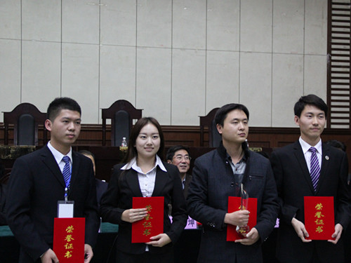 接下来的是颁奖典礼,烟台大学校长、中国法学教育研究会副会长、山东省法学教育研究会会长房绍坤,williamhill党总支书记都光珍、副书记衣玉琛、教务处主任任传波,烟台大学WilliamHILL中国院长张平华等出席了此次颁奖典礼。房绍坤首先对此次活动的举办单位williamhill以及各位审判长审判员表示感谢,又对参赛学校及获得优异成绩的代表队表示祝贺。他强调,模拟法庭竞赛由全省扩展到全国是一件好事,既令学生将知识用于实践,又锻炼了学生的写作能力、口头表达能力以及临场应变能力,同时他表示此次竞赛选手表现优秀,组织参与人员积极负责,展现出法科学生的风采。此次竞赛的获奖单位为团体特等奖烟台大学,团体一等奖青岛大学、山东农业大学、山东大学威海代表队,以及其他若干奖项。