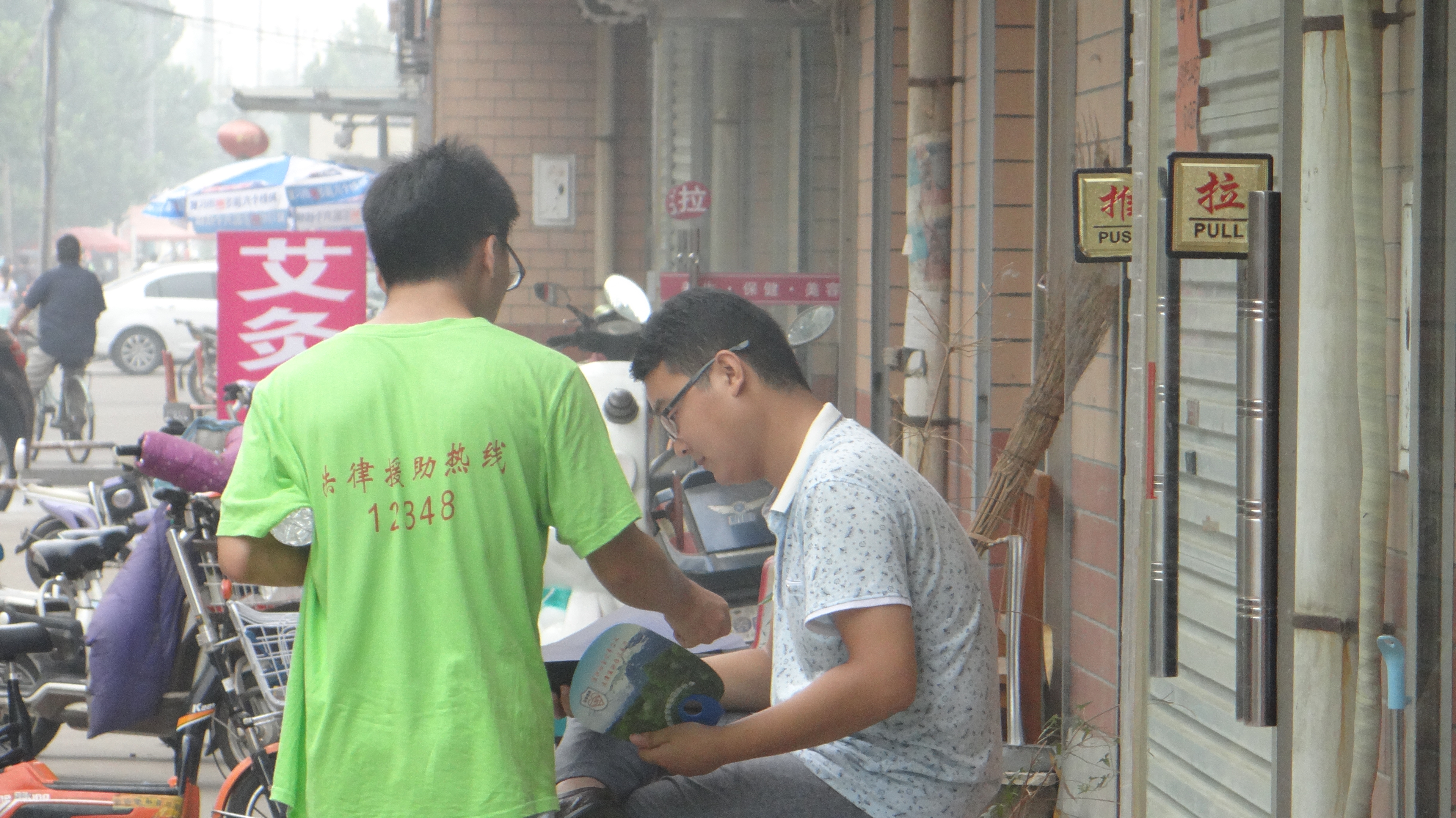 当今社会人们的法律意识淡薄和法律知识不足的情况非常之严重,所以这个以法律宣传为主的社会实践活动是非常有必要的。在近两个小时的路程之后,我们到达了本次实践活动的目的地——桓台县索镇商城小区大集。通过观察和简单的访谈,我们发现,社区的居民并不具备良好的法律意识。于是,实践队的队员们立刻就投入了工作,我们拿着法律宣传单页、印有法律咨询电话的扇子开始分发。并且,我们在进行普法宣传的同时进行未成年人保护的调研活动。小红帽,绿衣服是我们最显眼的标志。在宣传的过程中不时有居民上前询问自己所遇到的法律问题。实践队员们利用自己所掌握的知识为居民解决一个个让他们烦恼至极的问题。整个过程十分顺利,居民们都积极配合实践队员们的工作,这使得调查问卷能顺利地完成。