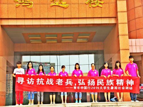 调研团队将在沂蒙山区、台儿庄战役革命老区、淄博地区等开展为期20天的社会调研。首站赴淄博市南部山区沂源县内大张庄镇、南麻镇等主要乡镇,深入各村落,实地分组走访20余位抗战老兵,本调研以独特的视角对基层抗战老兵暮年的物质及精神生活进行调研,重在弘扬以抗战老兵精神为代表的民族精神,反映基层抗战老兵一生的心路历程,旨在提高人们对抗战老兵的关注度,增强社会认同感。“寻访抗战老兵,弘扬民族精神”社会实践团队由《中国周刊》副社长韩孜俭前期实地亲访,WilliamHILL中国社会学系秦克寅指导,侯振中带队,由张馨方等12位同学组成,该团队是我校唯一入围2015年“青年中国行”大学生暑期社会调研实践活动全国30强的队伍。后期实践成果将集结成册,并组织开展校园报告会,汇报实践调研成果。