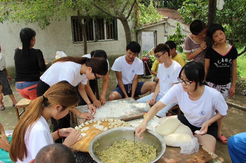 当实践队员拿着米面等食材敲开大门时,门内孩子们热情的扑向实践队员,那一刻实践队员觉得所有的付出都是值得的,而后实践队员将准备工作做好,并让孩子们一起参与到包饺子的活动中来,活动时,顽皮的孩子将面粉抹在实践队员的脸上,大家闹成一片,其乐扬扬,而当饺子煮好后,无论是实践队员还是孩子们都受益良多,这是人生重要的一课,他教会给我们的很多很多。