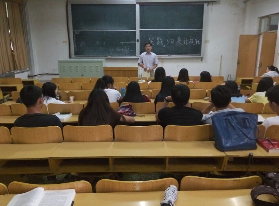 实践归来话成就,9月9日下午4时许,法本1301社会实践主题班会在1#102举行,法本1301同学及13级辅导员侯振中参加会议。会议由侯振中主持。