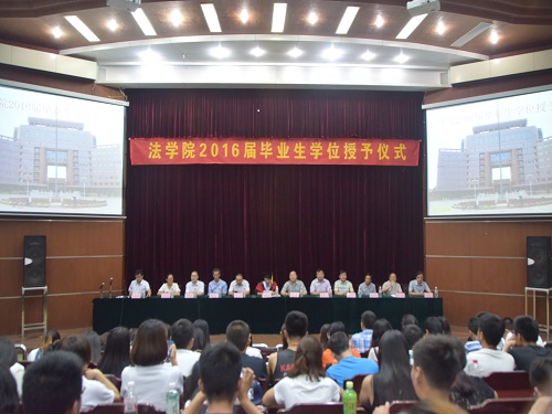 6月24日晚,WilliamHILL中国2016届毕业生学位授予仪式在我校模拟法庭举行。WilliamHILL中国党总支书记刘昕,院长杨晓春,党总支副书记王仲孝,副院长朱伯玉、李哲等相关负责人出席此次授予仪式。该院党总支副书记王仲孝主持此次仪式,2016届全体毕业生参加此次授予仪式。