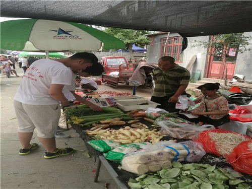 7月20日,上午九时许,沂源情实践团成员来到西里镇大集,针对不同年龄段的村民进行问卷调查。西里镇大集每五天一次,各村村民到镇上指定地点进行物品交易。