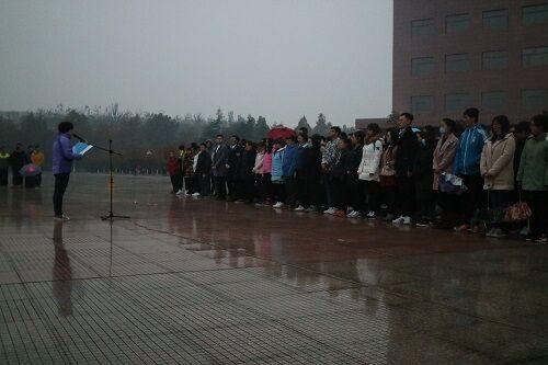 升旗完毕,许燕飞发表讲话。她倡议同学们要“坚定理想信念,勇担青春使命”。大学生要在风华正茂的青春里,书生意气,挥斥方遒。发扬雷锋在有限的青春里为人民无限的服务精神。只有为社会服务的青春,才是值得回忆的青春。同时,她还激励所有同学在社会主义核心价值观的指导下,做一个爱国、敬业、诚信、友善的良好青年,为祖国美好的明天奋斗。