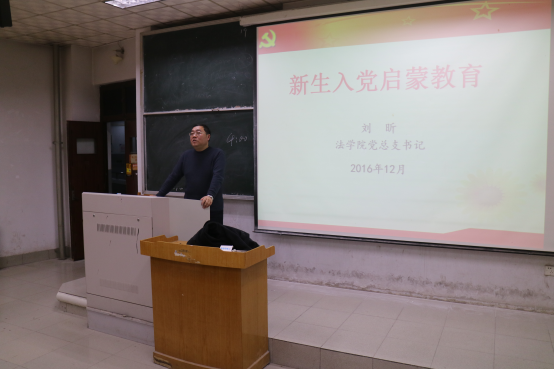 刘昕书记先是从自己的大学生活说起,剖析自己当时的心路历程,引发了同学们的共鸣,会议气氛热烈,同学们不禁凝神等待刘昕书记接下来的讲话。接下来刘昕先是介绍坚持马克思主义的重要性,从多方面分析共产主义信仰和宗教信仰的不同,并提醒同学们学生不能在校园里宣传宗教,令同学们感受到刘书记的拳拳爱护之心。之后,刘昕着重介绍了党的“四个全面”的工作目标和“五大发展理念”,使同学们贴近党的工作思想,能够对我国当前发展形势有更深入清晰的了解。另外刘昕书记推荐了一些阅读书目,进一步满足同学们了解共产党的诉求。会议最后,刘昕书记希望同学们珍惜大学生活,努力学习,全面提高自身素质,了解党,拥护党,并积极为入党做准备。