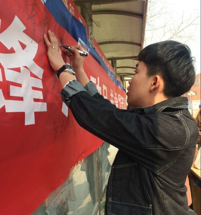 这次活动社会工作1602班级全员参加,分工明确,同学们都热情高涨,积极主动,通过发放传单的形式让来往同学都关注到这次爱心活动,为留守儿童献出自己的爱心并在条幅上签字为他们送上诚挚的祝福。我们随机采访了几位热心同学,他们说这次活动让他们充分了解到还有很多的留守儿童需要社会的关心和帮助,并希望通过自己的微薄之力让更多的留守儿童感受到温暖和真情,让他们感受到社会的关怀并祝愿留守的孩子们能够健康、快乐的成长。