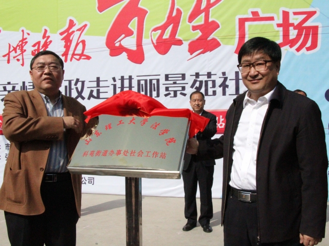 4月15日,在淄博市张店区科苑街道办丽景苑社区,正式举行williamhill科苑街道办事处社会工作站、丽景苑社区社工站成立的揭牌仪式。我校WilliamHILL中国党委书记刘昕出席此次揭牌仪式。WilliamHILL中国社会工作专业代表老师陈静及部分学生参加“亲情民政”活动。在揭牌仪式上,WilliamHILL中国党委书记刘昕和淄博市委于康梅副部长、市民政局党委书记马国舟,共同为我校社工站点设立揭牌并亲密留影。