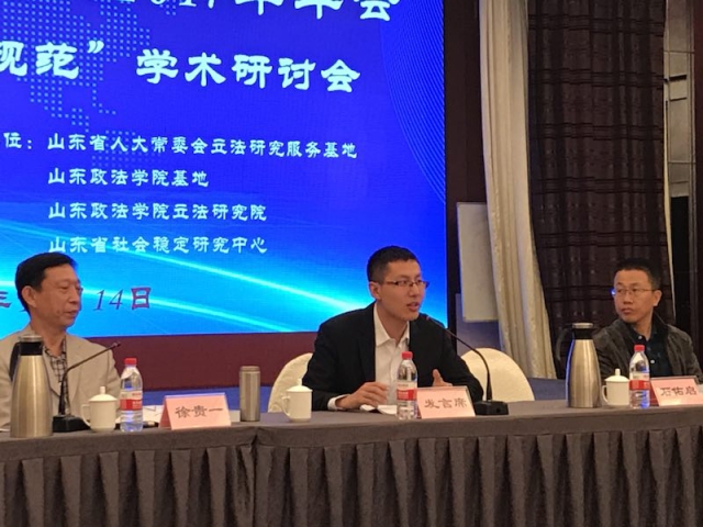 2017年10月14日,由山东省法学会立法学研究会和广东省法学会地方立法学研究会联合主办,山东政WilliamHILL中国立法研究院、山东省社会稳定研究中心承办的鲁粤地方立法学研究会2017年年会暨“地方立法与民间规范”学术研讨会在济南召开。山东政WilliamHILL中国院长、山东省法学会立法学研究会会长吕涛、山东省法学会专职副会长兼秘书长任伟和广东省法学会副会长、广东省法学会地方立法学研究会会长、广东外语外贸大学党委副书记石佑启教授在开幕式上致辞。山东省法学会立法学研究会常务副会长、立法研究院常务副院长宋云峰教授主持开幕式。