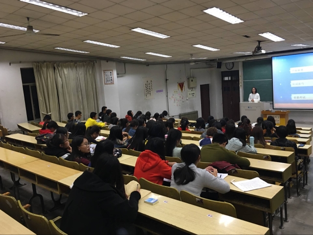 首先,王梦向同学们简单介绍了自己。随后,她从日常学习开始讲起,详细地向我们讲解了平时积累的重要性,并分享了自己总结的一些应试技巧以及应如何应对技能考试的技巧。同时又告诉在场的同学,实践锻炼对我们大学四年学习生活的非凡意义,不仅可以丰富自己的人生阅历,还可以为以后的求职、考研等打下良好的基础。为让同学们更好了解考研推免,王梦从日常积累、学校选择、面试技巧三个方面进行了详细讲解并结合自身经历体验以及当下实际向同学们阐释了原理。最后,王梦对此次交流分享会做出精彩总结并向同学们献上最真诚的寄语。