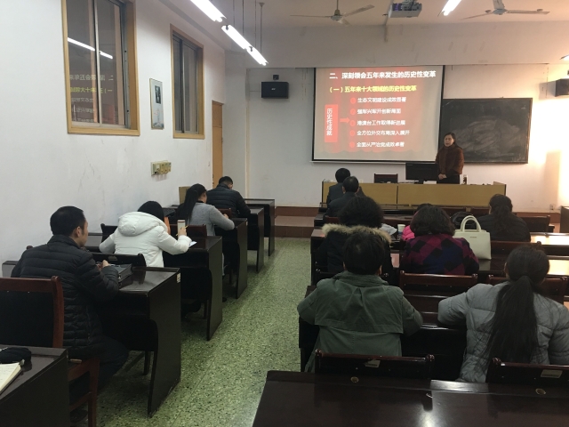 报告结束后杨晓春同志总结发言,他强调:学习好、宣传好、贯彻好党的十九大精神,是我院当前和今后一段时期的首要政治任务和工作主题,党员干部要把学习十九大精神与“两学一做”常态化教育结合起来,要带头学、率先做,着力在学懂、弄通、学深、悟透。全体教职工要深刻领会习近平新时代中国特色社会主义思想,将教学内容与党的十九大精神和习近平新时代中国特色社会主义思想紧密结合,为国家培养政治合格、思想进步、素质过硬的法学人才。