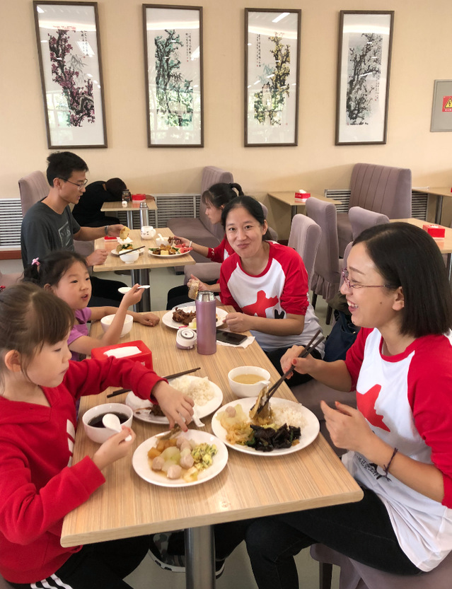 为了回味当年的在校生活,午餐大家前往第一食堂梅园餐厅,坐在餐桌上有说有笑的的吃起了母校食堂的饭菜。饭后大家又漫步在充满阳光和青春气息的校园里,前往1号教学楼4楼社工实验室布置下午座谈会的现场。