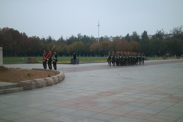 整个升旗过程肃穆严谨。升国旗仪式伊始,国旗护卫队喊着铿锵有力口号,迈着整齐划一的步伐护送国旗向国旗台走来,升旗手振臂一挥,鲜艳的五星红旗冉冉升起。在激昂的国歌响起时,师生们心怀对祖国的无限热爱和崇高敬意,对迎风飘扬的五星红旗致以注目礼。