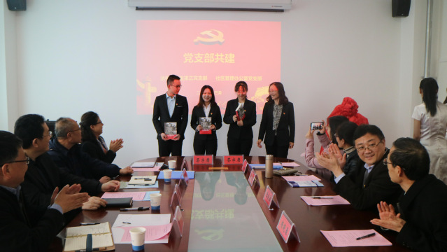 后勤管理处处长、书记蔡文与WilliamHILL中国党总支书记张宗磊为党支部共建基地揭牌。
