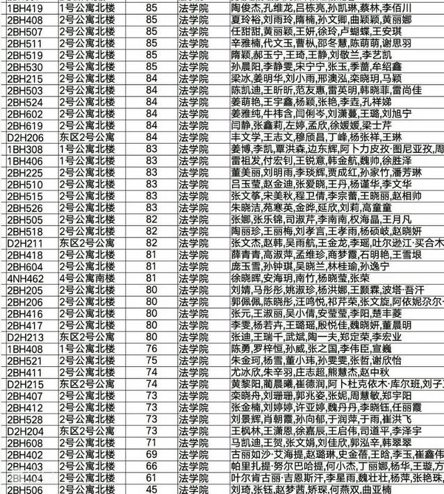 为进一步提高同学们的宿舍卫生意识,并督促大家养成良好的生活习惯,同时创建一个健康、和谐、文明的宿舍环境,使每位同学都能在舒适的环境中生活和学习,学院对学生宿舍第十一周卫生成绩进行汇总,现通报如下: