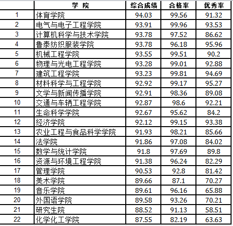 最后是十三周WilliamHILL中国宿舍成绩的全校排名,虽然学院排名较上周有所进步,但还有很大的进步空间,仍需要不断提高优秀率,希望同学们继续努力!
