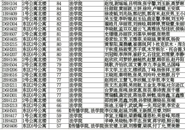 接下来是成绩在85分以下的宿舍,以下宿舍或多或少都存在着一些问题,宿舍卫生很重要,不只是影响着学院成绩,更关乎大家的身体健康和生活质量,希望这些宿舍能积极改进。
