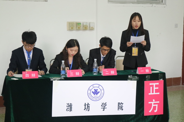 参赛的各高校代表队和评委共同观看开场视频后,主席简要介绍了比赛规则与现场评委。紧接着,对阵双方围绕“高校的学风建设应该以刚性规范为主还是以柔性教育为主”展开了激烈的论辩。双方一辩就已方观点进行立论阐述,以情动人,十分精彩,紧接着双方四辩针对对方观点的漏洞进行盘问,双方二辩针对对方立论做驳论。在随后的对辩环节中,正反方的二辩手一对一进行对辩,对阵双方步步紧逼,气势夺人。正反方三辩分别对对方一、二、四辩进行盘问,思路清晰、妙语连珠。三辩进行盘问小结后,比赛进入激烈的自由辩论环节。此环节中,双方辩手就已方观点引古喻今、旁征博引,抓住对方漏洞进行提问、反驳,尽全力来驳倒对方观点。在最后的总结陈词中,双方四辩也表现不凡,通过旁征博引来巩固己方战果。