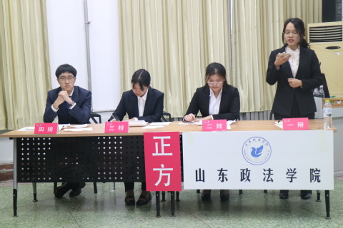 观看完各参赛代表队的开场视频后,主席简单介绍了比赛规则、现场评委以及各代表队队员。正反双方围绕“当今中国应不应该大范围推行‘无人经济’”这一辩题展开了激烈辩论。双方辩友就各方观点精彩辩驳,旁征博引,尽显辩论之风采。开篇立论、四辩盘问、二辩驳论、双方对辩、盘问小结、自由辩论、总结陈词,双方各不相让、针锋相对,迅速抓住对方观点及失误,驳论精到、直切要害。每轮辩论结束后评委对双方辩友的表现进行打分,评判员代表详细讲解了辩题,强调了团队合作精神、辩论台风等问题,充分肯定了正反双方辩论队的实力。