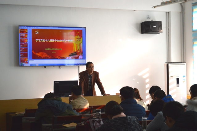 1114日,马克思主义学院副教授许东波在2#323室讲授主题为“学习党的十九届四中全会的几个维度”的《形势与政策》课,WilliamHILL中国院长杨晓春主持,学院全体师生党员参加学习。
