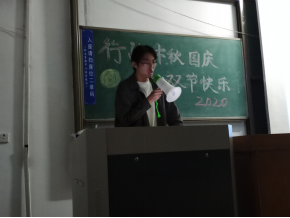 10月1日晚上,法学,社会工作,行政管理专业分别在二教201教室,一教102教室以及二教127教室举办“国庆中秋双节晚会”。整场晚会由学生自主参与组织与编排,学生自主报名节目展示,节目内容形式丰富,表演内容积极向上生动有趣,充分展现大学生优良的精神风貌。《夏天的风》、《水星记》等悦耳动听,使得台下的同学也打开闪光灯回应,笑点十足的小品以及相声表演《满腹经纶》,引起了现场欢乐的共鸣,还有朗诵以及新疆舞表演,同学们积极响应,掌声不断。军训教官和2019级学长也客串了晚会,更是引起同学们的热情掌声。晚会的最后,同学们集体合唱《我和我的祖国》,歌声中充满对祖国的热爱,整场晚会圆满结束。