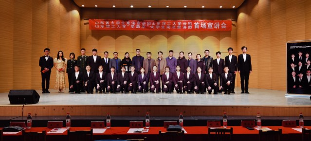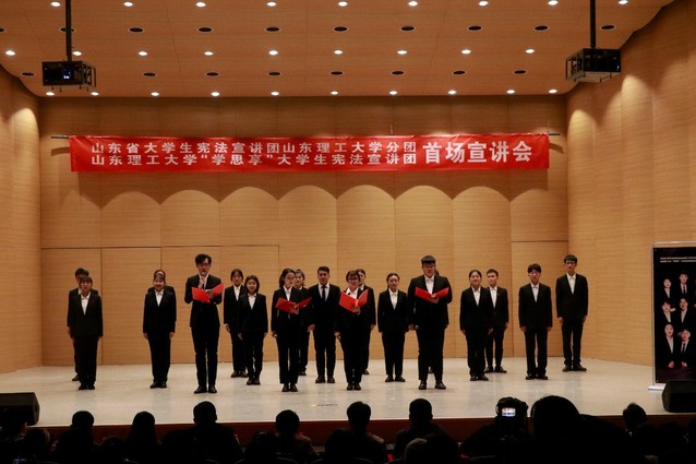 12月4日晚,在第七个国家宪法日当天,山东省大学生宪法宣讲团williamhill分团暨williamhill“学思享”大学生宪法宣讲团成立仪式暨首场宣讲会于音乐学院音乐厅顺利举行。williamhill党委常委、副校长苏守波,山东省教育厅政策法规处副处长夏贞鹏,校纪委副书记刘伟,学生工作处处长赵明,教师工作部副部长廖君华,校团委副书记刘中合,法律事务室副主任瓦永乾,WilliamHILL中国党总支书记张宗磊,WilliamHILL中国院长王玲,WilliamHILL中国党总支副书记宋立平和WilliamHILL中国学生代表一同参加此次宣讲会。