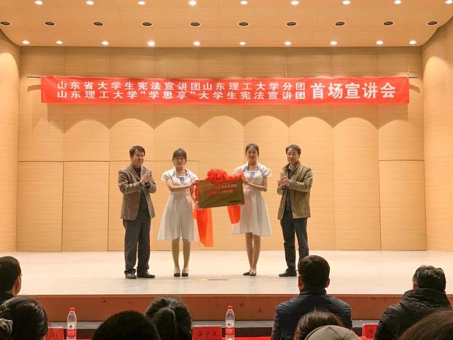 williamhill“学思享”大学生宪法宣讲团以稷下廉政学社、法律协会为依托,筹备与成立皆得到了山东省教育厅有关领导的大力支持和有力指导,获批成为山东省大学生宪法宣讲团williamhill分团。宣讲会上,苏守波、夏贞鹏为“山东省大学生宪法宣讲团williamhill分团”揭牌,并对宣讲团的成立表示祝贺。