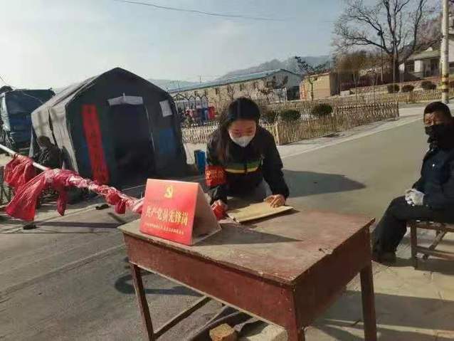 姓名:张玥 班级:法本1803服务地点:山东省烟台市栖霞市桃村镇服务事迹:在村口的防疫站执勤,负责对来访人员查验身份、登记信息,对进入人员测量体温,对外出娱乐活动和串门聚会的居民进行劝导。