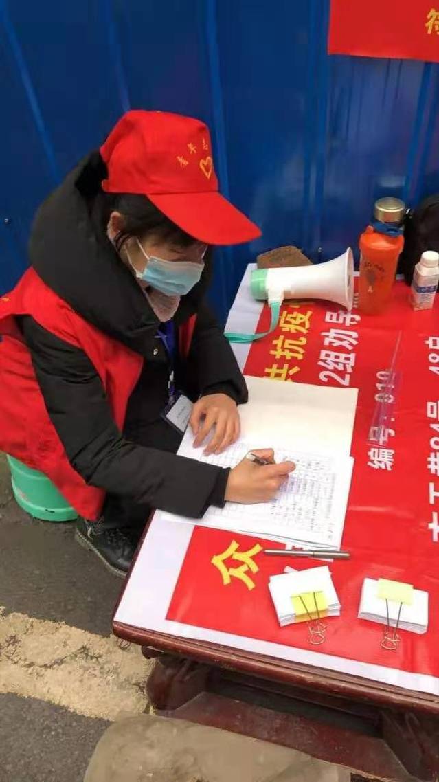 姓名:余佳惠 班级:法本1803 服务地点:四川省眉山市东坡区大石桥街道红星西路社区服务事迹:在社区门口设点执勤,给社区居民办理出入证,对进出人口,车辆进行登记并测量体温,督促来往行人佩戴口罩。