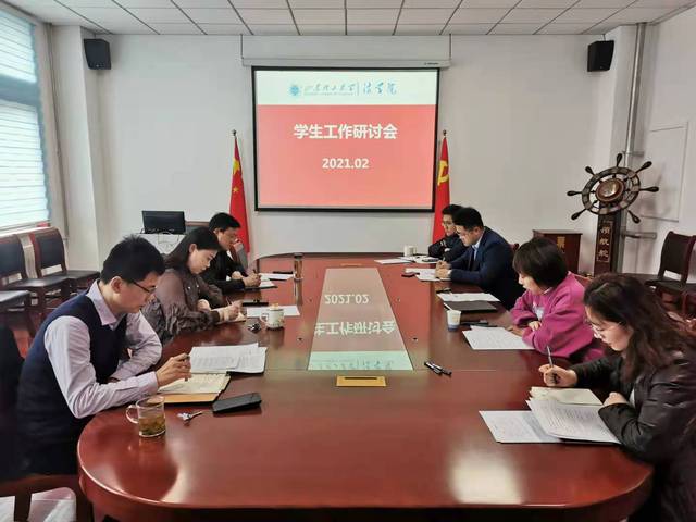 为更好推动学生工作又快又好发展,2月24日下午,学院召开学生工作研讨会。学院党总支书记张宗磊、院长王玲、党总支副书记宋立平和全体辅导员一起谋划2021年的工作思路、任务目标、重点工作,进一步统一思想、凝聚共识,把措施找实、把责任压实、把工作做实。