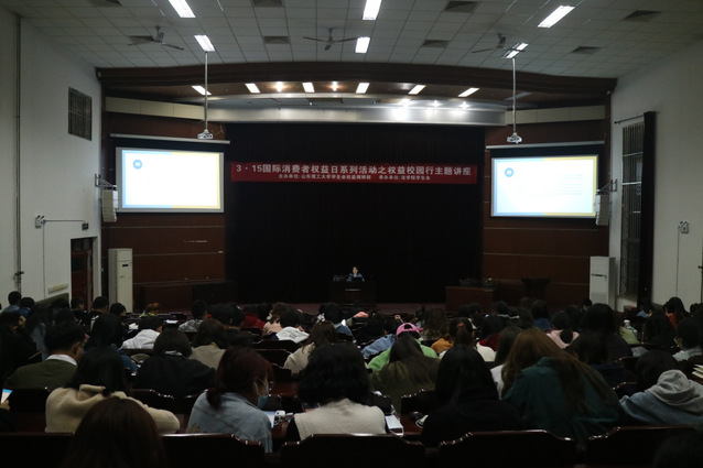 此次讲座特别邀请到山东沂川律师事务所的邢艳律师,向同学们普及消费者权益相关知识,并结合消费者权益保护案例来讲解如何依法维护消费者自身的权益,教授大家如何辨别消费陷阱。同学们认真听讲,受益匪浅。此次讲座在一片掌声中圆满结束。
