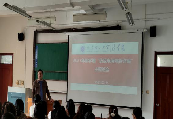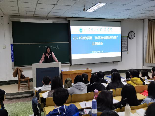 当前电信网络新型犯罪活动猖獗,由于大学生涉世未深,防范意识不强,高校诈骗案例呈高发趋势。学院各年级辅导员在此次主题班会上,从大学生电信网络诈骗典型案例、大学生容易遭遇的诈骗类型、大学生如何防范电信网络诈骗、常见的60种电信网络诈骗套路等四个方面展开,通过案例展示分析以及各种套路分析介绍,让大家进一步了解网络电信诈骗的形式类型,掌握基本防骗技能,提高防范意识,不轻信他人。