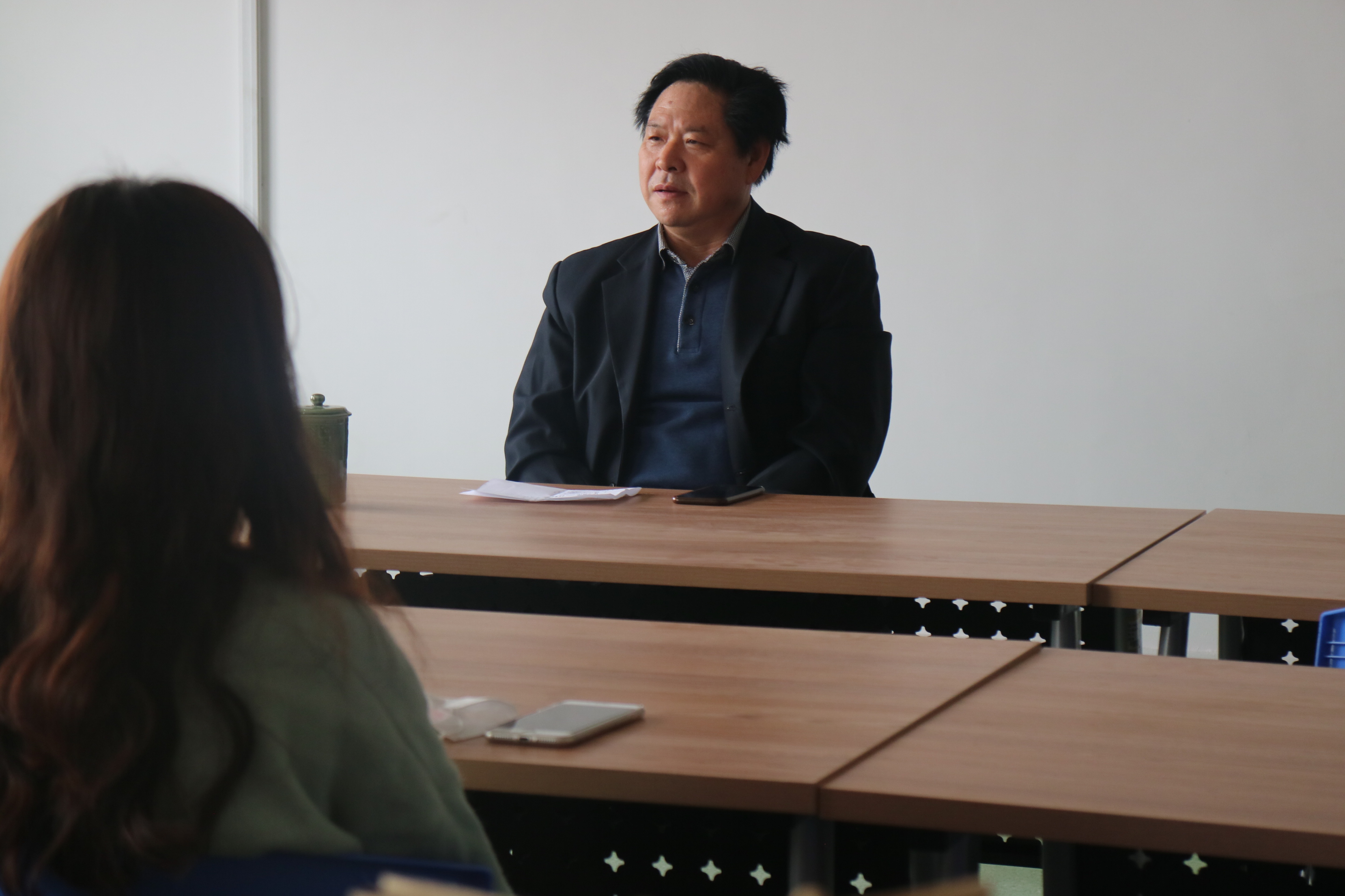 会后对倪老师进行了简短采访,他表示自己教学就是将理论与实际相结合,和同学相处要与同学诚实、平等相待,不仅为同学现在负责,还要为同学未来负责。最后他希望同学们专心致志好好学习,坚定不移实现自身理想。