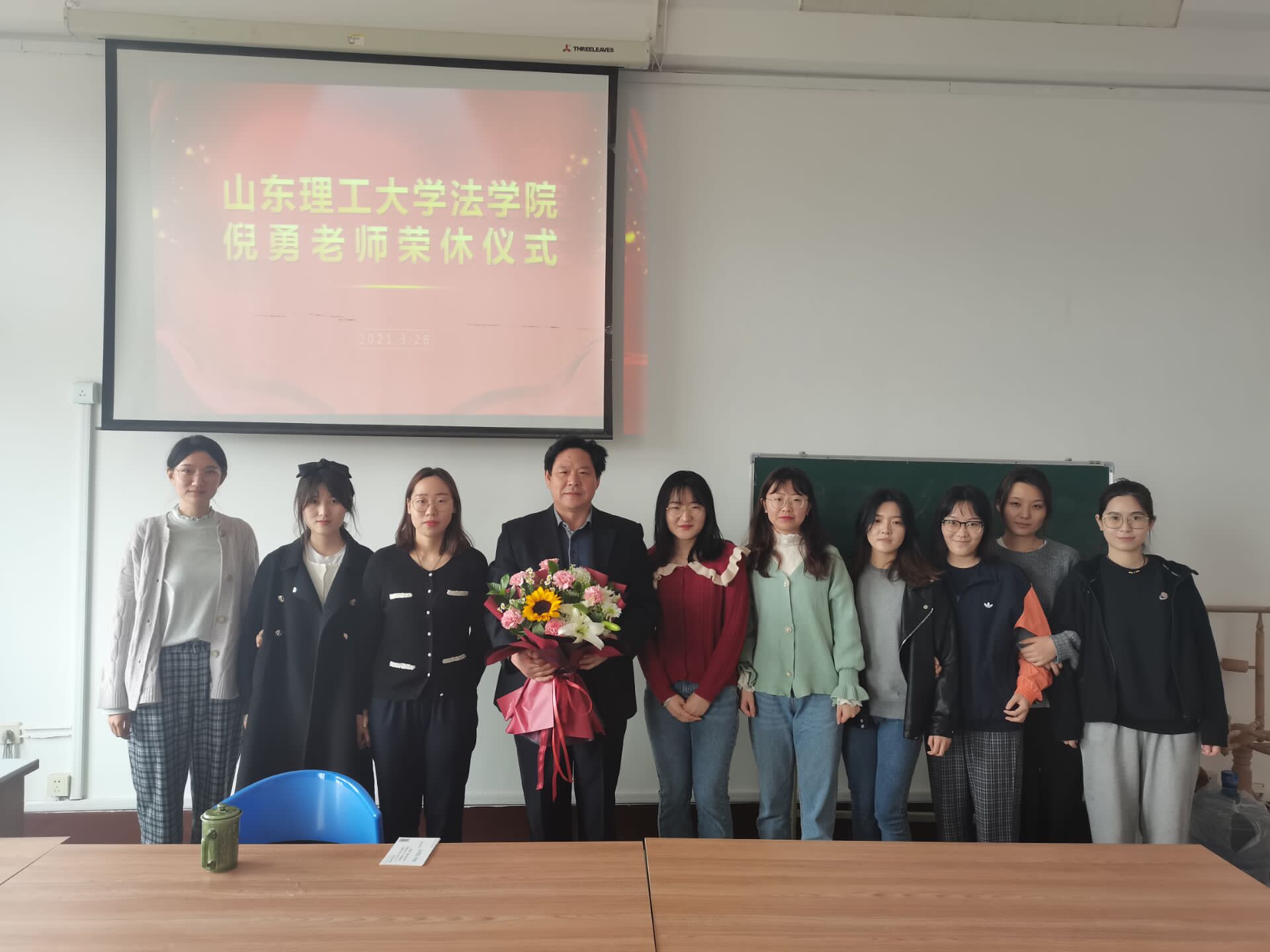 最后由学生代表向倪老师献上鲜花,大家合影留念,欢送会在一片温馨与不舍中落下帷幕。