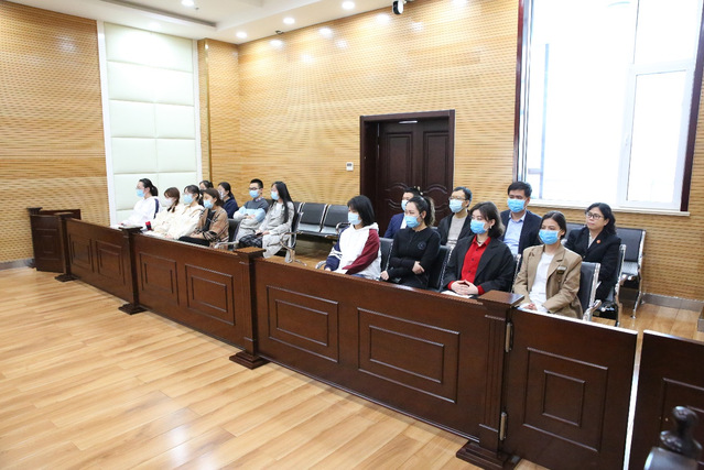 下午13时30分,在法律系郑承友、国鹏、封延会、徐德臣四位老师的带领下,十二名法学本科学生通过法院的安检进入诉讼服务区域,参观了立案大厅等办公场所。下午14时,随着一声法槌庭审开始,整个庭审共持续了一个半小时。从书记员宣布庭审纪律到审判长核实当事人信息,从法庭调查到法庭辩论,直至审判长宣布休庭,同学们自始至终保持全神贯注,对于民事诉讼庭审的整个流程有了一个直观、深刻的了解。庭后,知识产权庭倪玲玲庭长带领合议庭人员和其他法官,就我国当下知识产权司法保护面临的相关问题与我院师生进行了座谈。除了庭审涉及到的实体问题和程序问题,法官们还针对同学们关心的包括法官的工作状态、职业感悟等方面的问题与各位同学进行了深入的交流。最后,各位法官还结合自身的学习、工作经历,向同学们提供了诸多建议。