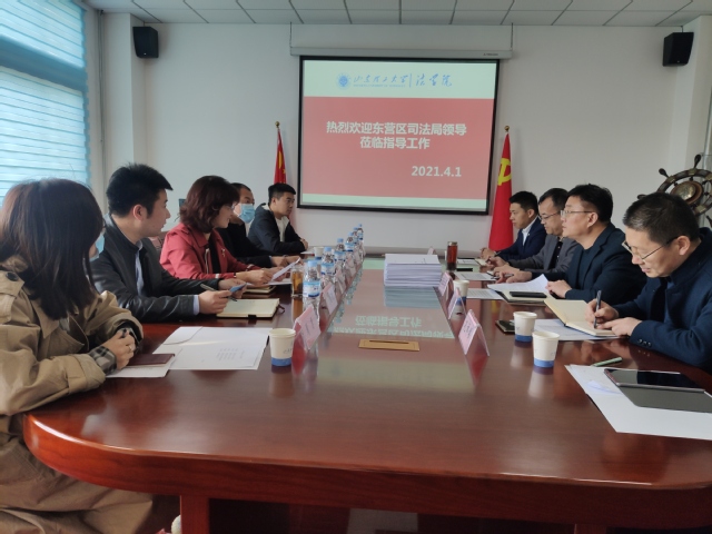 2021年4月1日上午,东营市东营区司法局党组副书记、副局长周俊玲等一行6人,就法治指数评估工作来我院调研洽谈。我院党委书记张宗磊等4人在学院310会议室参加座谈。