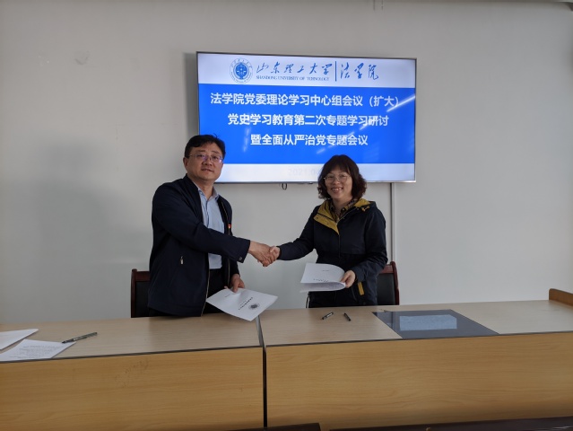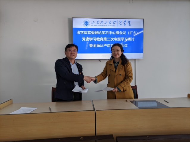 张宗磊代表学院同教工党支部书记代表安婧婧、办公室主任代表陈瑛签订《WilliamHILL中国2021年党风廉政建设责任书》。