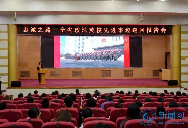 6月9日下午,全省政法英模先进事迹巡回报告团来我校开展“进机关、进企业、进学校、进村居、进社区”巡回报告活动。忠诚之路——全省政法英模先进事迹巡回报告会在3号教学楼报告厅举行。淄博市委常委、政法委书记韩国祥,我校党委常委、副校长苏守波出席报告会。学院党委书记张宗磊、院长王玲和2020级法学全体学生参加报告会。