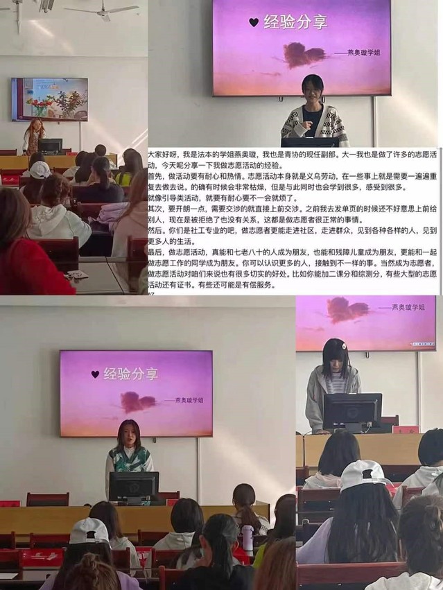 活动结束后,班级进行了主题班会,展示了大家在假期的志愿活动成就。同时班级还邀请了青年志愿者协会燕奥璇讲解志愿活动经验,分享活动感想与心得。