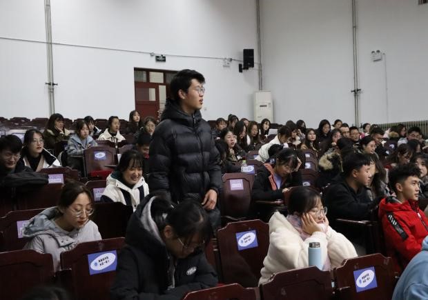 第一个环节是红歌竞猜,主持人播放《弹起我心爱的土琵琶》《团结就是力量》《我的中国心》《爱我中华》等众多红色歌曲,同学们争分夺秒抢答,积极参与,现场氛围空前热烈,欢声笑语不绝。在第二个比赛环节红歌接龙中,主持人播放《我的祖国》《同一首歌》等红歌,同学们进行抢答接龙,场上掌声四起。最后的小组合唱部分,各个小组有序上场,对所选的红歌曲目进行合唱,每名同学都将自己对党、对祖国的由衷热爱和真挚祝福寄托在歌声里,演绎出同学们涵养深沉的家国情怀。