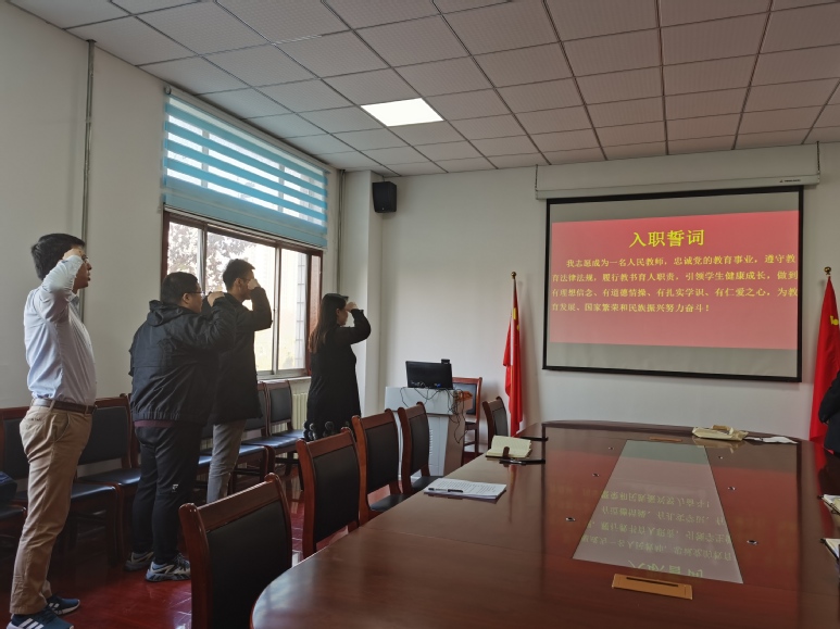 会上,王玲带领新进教师进行入职宣誓。青年教师导师代表张波与大家分享了自己从教近三十年的心得体会并对新进教师在教学方面提出了建议。新进教师分别谈了自己入职学院以来的感受及下一步的工作打算。最后,王玲进行了总结讲话,代表学院对新进教师提出了希望和建议。