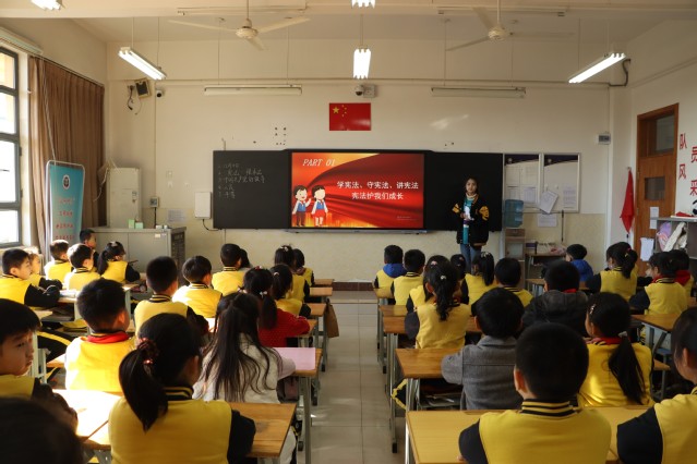 11月30日,在“12·4”国家宪法日即将到来之际,“学思享”宪法宣讲团来到淄博市高新区华侨城小学为同学们带来“红领巾心向党 我与宪法共成长”宪法法律知识宣讲。