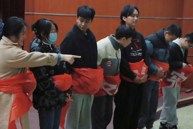 班会开始后,冯静尘为大家播放了一段关于生命诞生的视频,视频直观展示了生命诞生的过程,让同学们受到了很大的震撼。随后她带领大家进入体验活动。在“绑气球”的游戏中,现场的同学们将装有水的气球绑在肚子上,模拟孕妇的状态。同学们分为三组,各个小组成员手牵手围成一个圈,通过做蹲起运动,让同学们体验孕妇在行动上的不便,现场活动氛围高涨,同学们纷纷感叹孕育生命的艰辛。