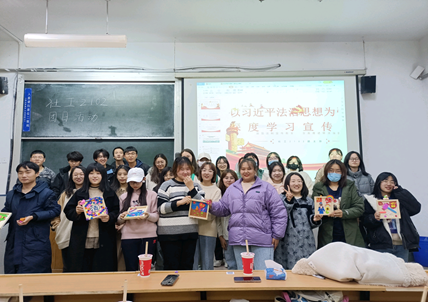 2021级团支部以习近平法治思想为引领,深入学习宪法知识,弘扬宪法精神,通过定向越野挑战赛、穿越呼啦圈之翻宪法条、创作宪法画作等一系列形式丰富、别出心裁的活动,线上与线下相结合,普及宪法知识,形成了良好宪法学习氛围。