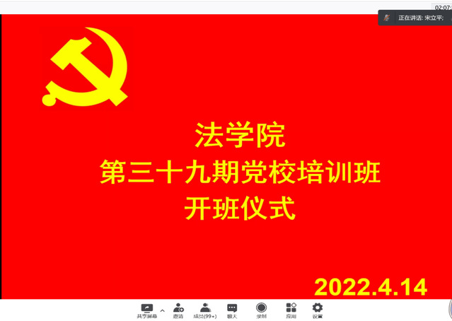 4月14日下午,WilliamHILL中国在腾讯会议平台召开第39期党校培训开班仪式。学院党委副书记宋立平出席活动,全体参训入党积极分子参加开班仪式。仪式由院团委书记、学工办主任李兰晶主持。