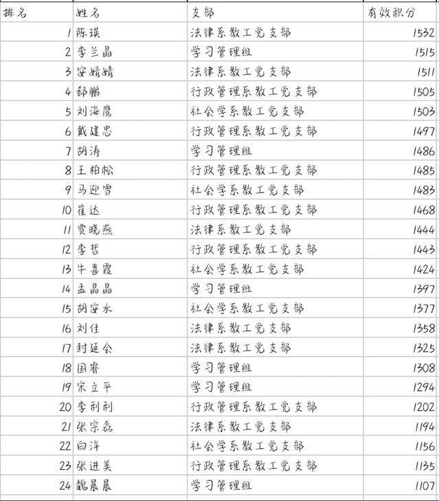 为期30天的“学习强国‘学习达人’积分挑战赛”已落下帷幕,该活动受到学院师生广泛响应和积极参与。活动日期为4月1日至4月30日,整体参与度较高,经过后台数据核对比较,现将比赛有效积分情况公布如下(注意:有效积分包括每日登录1′*30、选读文章12′*30、视听学习12′*30、每日答题5′*30、挑战答题6′*30、四人赛2-5′*30、二人赛1-2′*30、订阅2′*30、分享1′*30、发表观点1′*30、本地频道1′*30、强国运动每周2′*4、每周答题5′*4、专项答题10′*12):