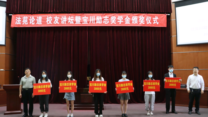 随后,孟晶晶宣读“宝川励志奖学金评选决定”,并公布了获奖名单,杜宝川和张宗磊为获得奖学金的六名同学颁奖并进行合影留念。