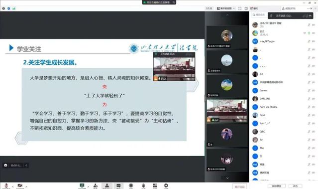 李兰晶从疫情防控、学业发展、安全教育、资助工作四个方面向同学们介绍了入学之后的注意事项,并对同学和家长提出的问题进行了详细的解答。